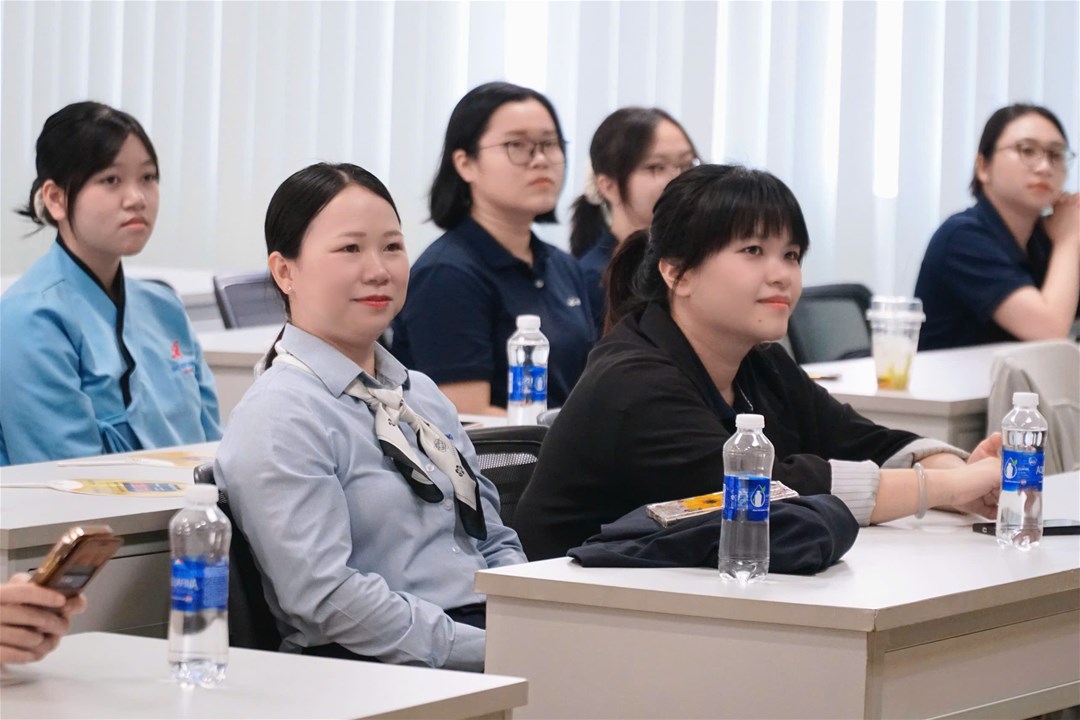 Sau phần trao đổi, sinh viên được tham quan nhà máy sản xuất, tìm hiểu sơ lược về quy trình sản xuất hiện đại, tác phong làm việc công nghiệp và các tiêu chuẩn an toàn – chất lượng trong doanh nghiệp FDI, đồng thời có những trải nghiệm thực tế vô cùng bổ ích.