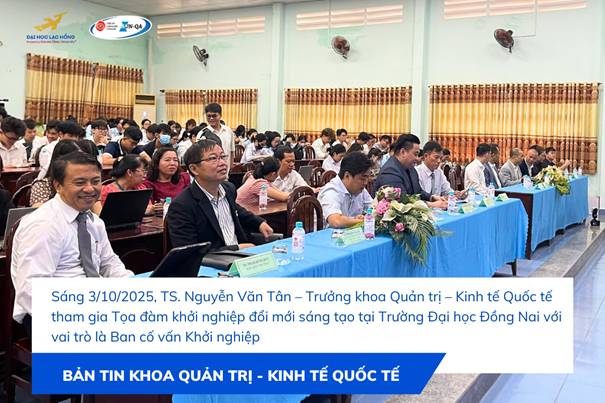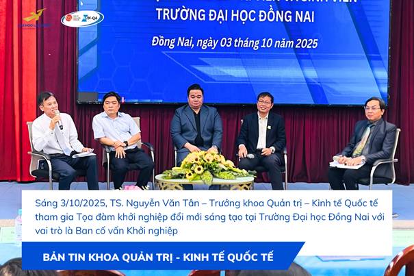 Sáng ngày 03/10/2025, tại Trường Đại học Đồng Nai đã diễn ra Tọa đàm với chủ đề “Đẩy mạnh hoạt động khởi nghiệp đổi mới sáng tạo trong giảng viên và sinh viên”. Chương trình quy tụ nhiều chuyên gia, doanh nhân, nhà quản lý, giảng viên và sinh viên đến cùng chia sẻ, trao đổi về con đường khởi nghiệp trong bối cảnh mới.