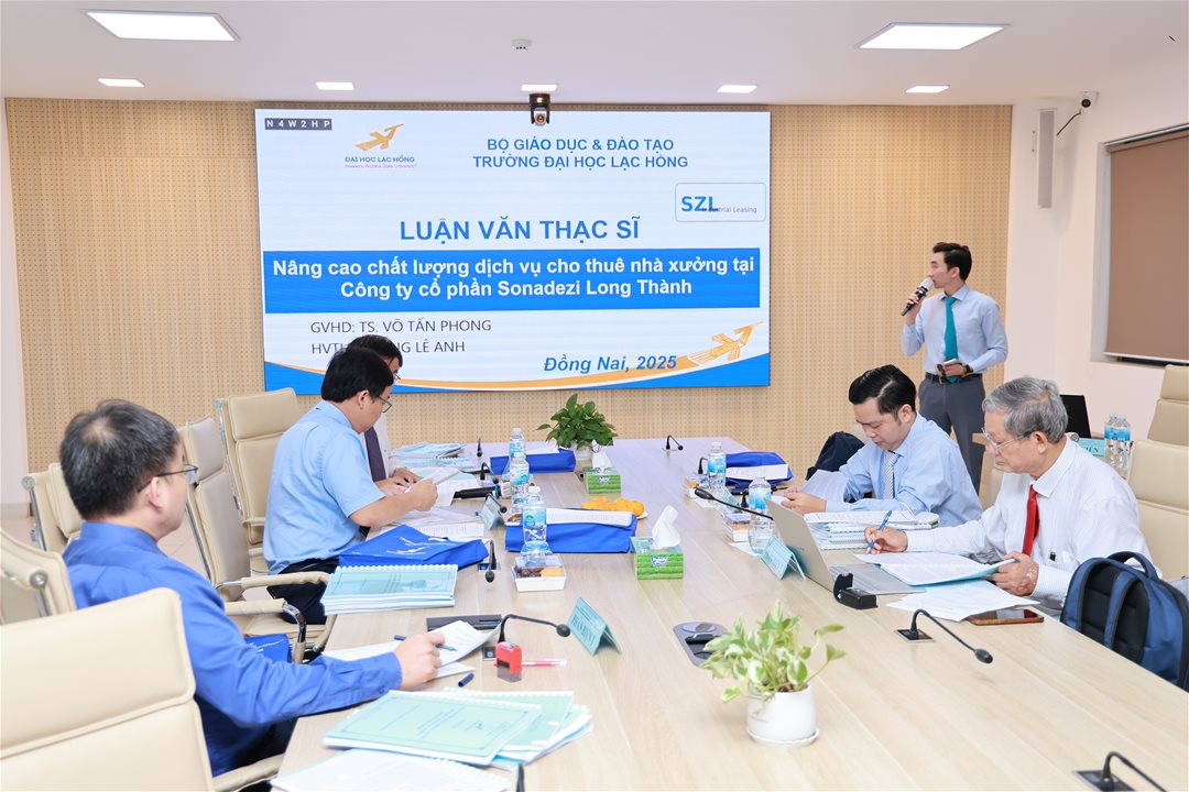 Ngày 07 tháng 10 năm 2025, tại phòng họp cơ sở 1 của Trường Đại học Lạc Hồng (LHU), 10 học viên ngành Quản trị kinh doanh đã xuất sắc hoàn thành và bảo vệ luận văn thạc sĩ của mình. Buổi bảo vệ diễn ra trong không khí trang trọng và đầy tính học thuật, đánh dấu một bước ngoặt quan trọng trong hành trình học tập và nghiên cứu của các học viên.