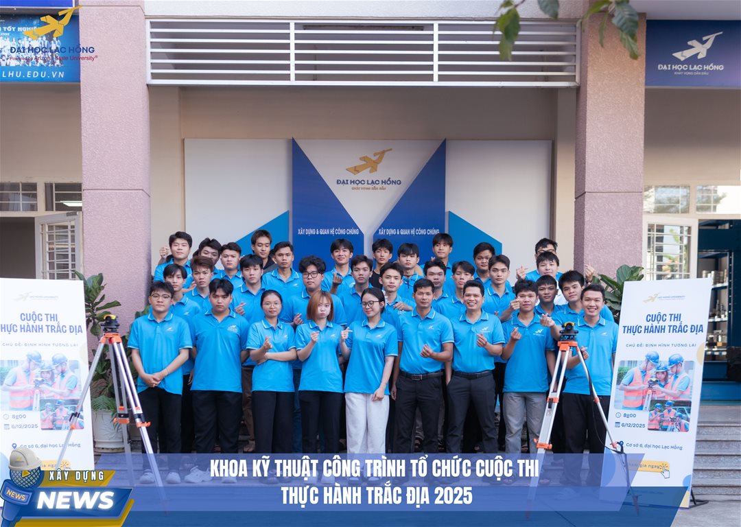 Nhằm tạo sân chơi học thuật chuyên môn, nâng cao năng lực thực hành và rèn luyện kỹ năng nghề nghiệp cho sinh viên, Khoa Kỹ thuật Công trình – Trường Đại học Lạc Hồng đã tổ chức Cuộc thi Thực hành Trắc địa 2025 với chủ đề “Định hình tương lai”. Cuộc thi là hoạt động học thuật thường niên có ý nghĩa thiết thực, giúp sinh viên củng cố kiến thức lý thuyết, nâng cao kỹ năng đo đạc ngoài thực địa, xử lý số liệu và làm việc nhóm – những năng lực cốt lõi của kỹ sư xây dựng trong bối cảnh chuyển đổi số và phát triển hạ tầng hiện đại.