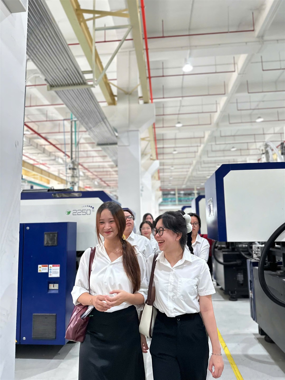 Trong thời gian tham quan, sinh viên có cơ hội quan sát trực tiếp dây chuyền sản xuất và quy trình vận hành của doanh nghiệp. Đây là trải nghiệm thực tế giúp các em hiểu rõ hơn về cơ cấu tổ chức, yêu cầu công việc và đặc điểm của môi trường sản xuất công nghiệp có yếu tố tiếng Trung. Bên cạnh đó, doanh nghiệp cũng chia sẻ về các vị trí việc làm phù hợp với sinh viên tốt nghiệp ngành Ngôn ngữ Trung Quốc, đồng thời nhấn mạnh tầm quan trọng của kỹ năng giao tiếp, tác phong chuyên nghiệp và khả năng phối hợp trong công việc.