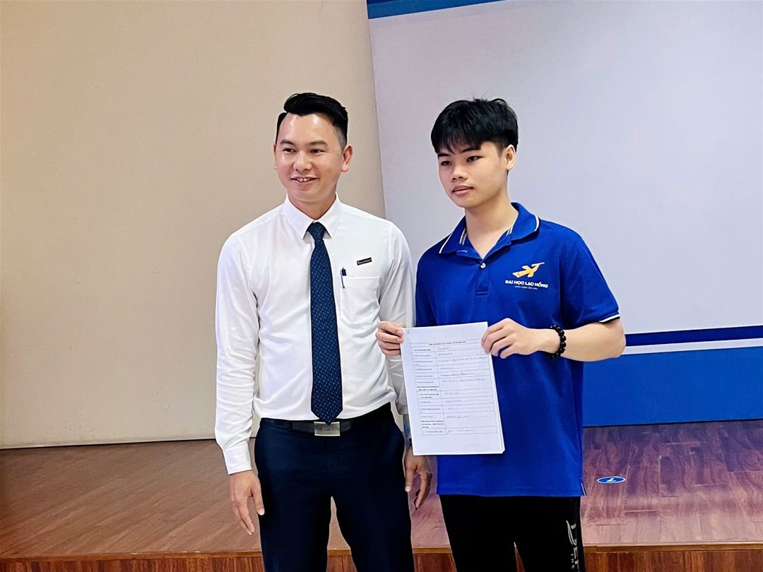 At the end of the program, representatives of the Faculty of Finance and Accounting at Lac Hong University expressed their sincere appreciation and presented a commemorative gift to Sacombank Dong Nai Branch. Students also captured memorable moments through commemorative photographs.
