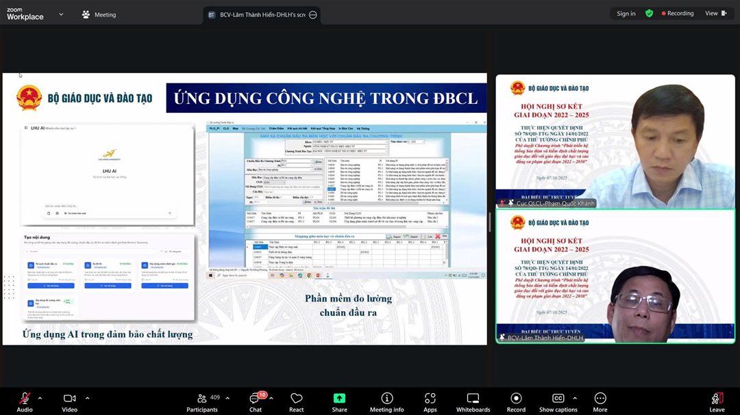 Hội nghị sơ kết việc thực hiện Quyết định số 78/QD-TTg của Thủ tướng Chính phủ. Phê duyệt Chương trình "Phát triển hệ thống bảo đảm và kiểm định chất lượng giáo dục đối với giáo dục đại học và cao đẳng sư phạm giai đoạn 2022 - 2030" diễn ra theo hình thức trực tuyến, do Cục Quản lý Chất lượng tổ chức, với sự tham dự của 7 cơ sở giáo dục đại học trên cả nước.