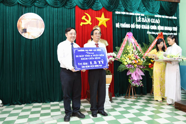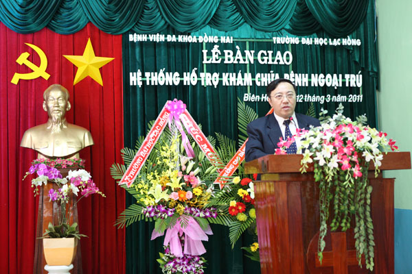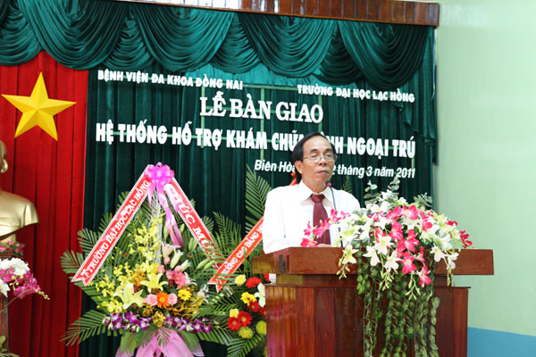 Dated 12 March 2011, at Dong Nai Polyclinic Hospital, the handover ceremony of the software "Outpatient Medical Treatment” took place. Attending the ceremony were Mr. Tran Huong – Vice Director of Representative Office of the southern Ministry of Education and Training in Ho Chi Minh, Ms.Vu Thi Dinh – Vice Chairman of public health Union, Dr. Tran Hanh - Rector of  Lac Hong University, Dr. Phan Huy Anh Vu - Director of Dong Nai Polyclinic Hospital and representatives of the provincial colleges, departments and branches.