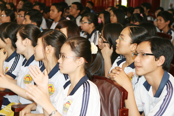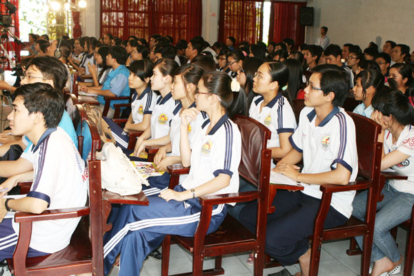 In this enrollment consultancy program, Dr. Tran Hanh also awarded the scholarship worth VND 10 million to students of Ngo Quyen high school.