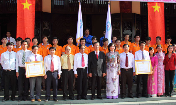 Before the ceremony, leaders of Dong Nai province and Lac Hong University along with Robocon team burnt incense at Tran Bien Temple of Literature. At the event, the two faculties - Faculty of Electrical Engineering - Electronics and Faculty of Electro mechanics was awarded the Third Labor Medal by the State for their achievements in research activities and in Robocon movements. This is a noble reward and an encouragement for them to continue their efforts to complete their training tasks.