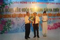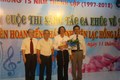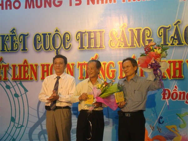 Comrade Nguyen Trung Phuong awards the first prize to Musician Cao Hong Son.