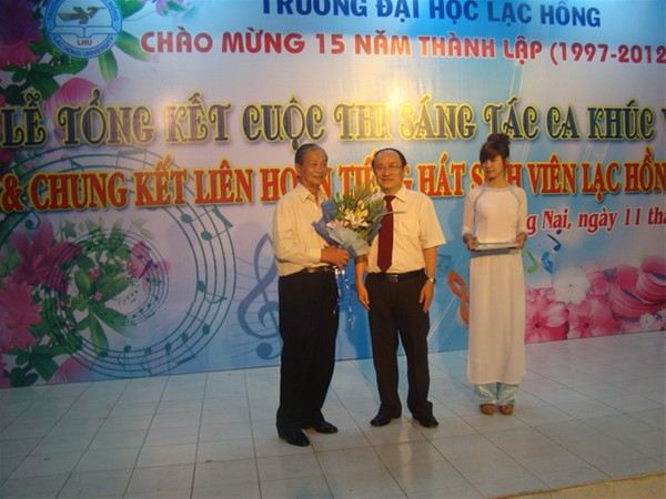 Lac Hong University has recently held the contest “Composing songs about Lac Hong University” to celebrate its 15th anniversary of establishment ((1997 – 2012). The contest saw the enthusiastic participation of many musicians, teachers and students. Voters consisted of 264 teachers and 6.717 students. Songs with the most votes would be selected for the first prize.