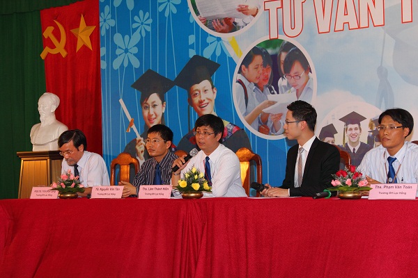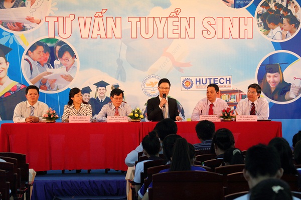 Attending the program was representatives of LHU including Lam Thanh Hien, M.A – Vice Rector, Assoc. Prof. Dr Tran Van Lang – Dean of Information Technology, Dr. Nguyen Van Tan – Head of Scientific Research and Postgraduate Office, Pham Van Toan, M.A – Vice Dean of Electro Mechanics; Vo Xuan Ly, M.A – Deputy Director of HCM city University of Transport; Dr.Tran Ai Cam – Vice Rector of Nguyen Tat Thanh University; Dr. Tran Dinh Ly – Head of Nong Lam University’s Academic Affairs; Mr. Le Dai Hung – Deputy Head of Saigon College of Art Culture and Tourism’s Academic Affairs; Mr. Nguyen Quoc Anh – Head of HCM University of Technology’s Communications and Enrollment Consultancy; Mr. Pham Van Vui – Deputy General Manager of VMEP Vietnam Co.; Mr. Nguyen Minh Then – Manager of Nec-Tokin Vietman Company’s Technical Department and a great number of students from Ngo Quyen high school.