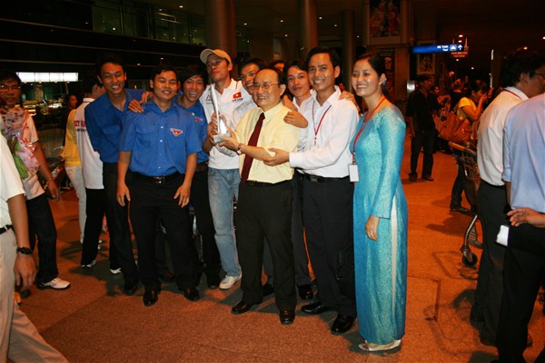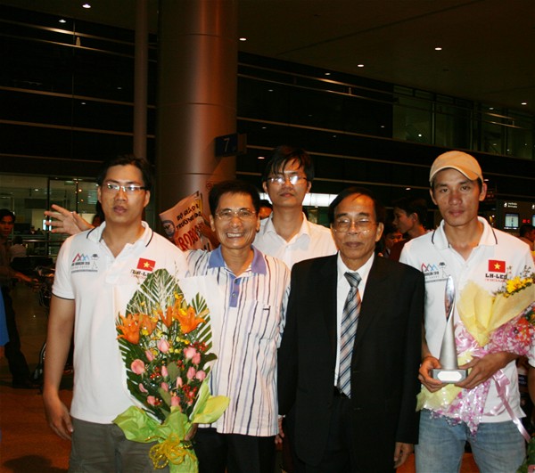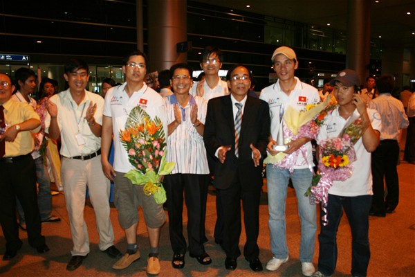 Just 5: 30 p.m of the same day, the delegation departured from the provincial state head office and be present at 7:00 p.m at the airport. At 7: 45 p.m, provincial leaders together with the school leadership directly gave the victorious team a warm welcome when they arrived home. Provincial leaders and teachers sent regards to their health and exchanged information about the competition with team members. Happiness, pride and a warm welcome made team members relieve their fatigue after a long flight.