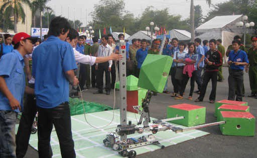 Lac Hong University has participated in the exhibition with a focus on products for scientific research, technology transfer in the whole school. With products like robots with obstacle overcoming capabilities, Taro Ren vending machines, pulse charging machines for batteries, robots for the recent Asia Pacific Robocon and so on, the school’s booth has attracted a large number of provincial young people.