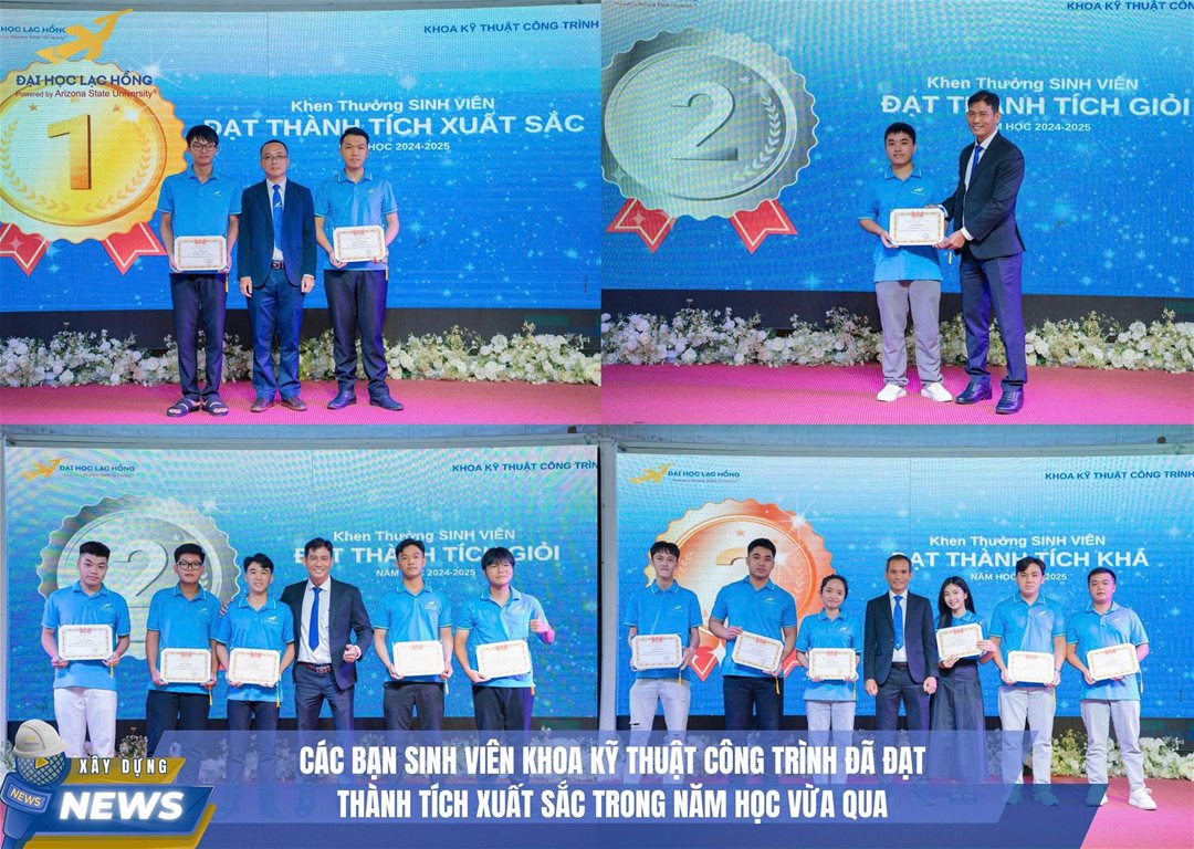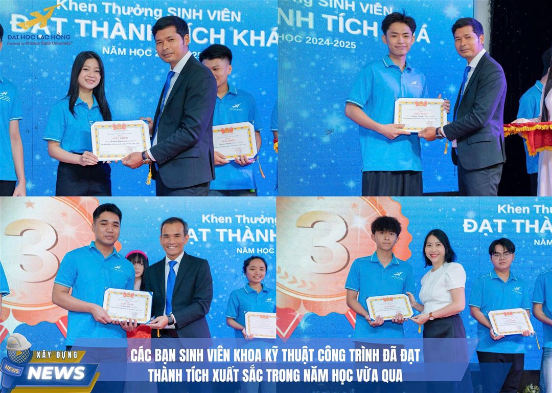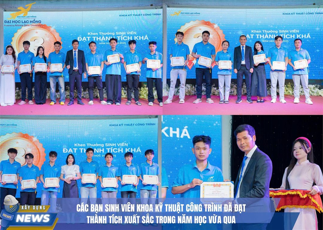 Khoa Kỹ thuật Công trình – Trường Đại học Lạc Hồng trân trọng chúc mừng các bạn sinh viên đã đạt thành tích cao trong năm học 2024 – 2025. Đây là minh chứng cho quá trình nỗ lực không ngừng, tinh thần học tập nghiêm túc và lòng yêu nghề của các thế hệ sinh viên Khoa Kỹ thuật Công trình.