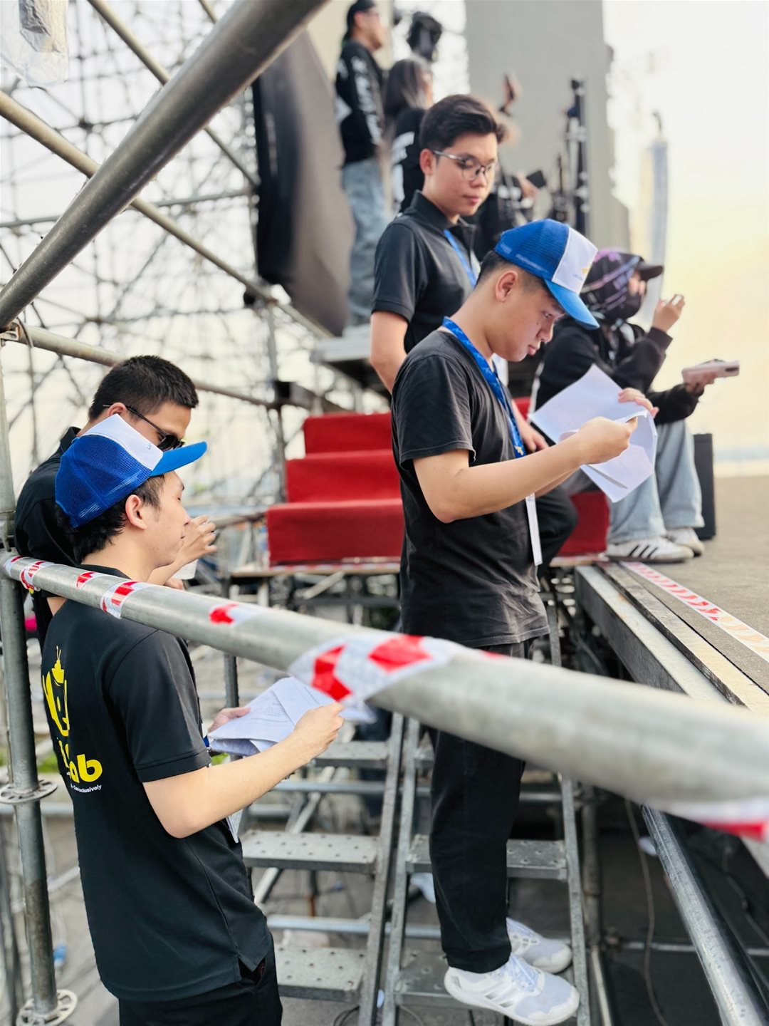 The student support team coordinating personnel and operations backstage.