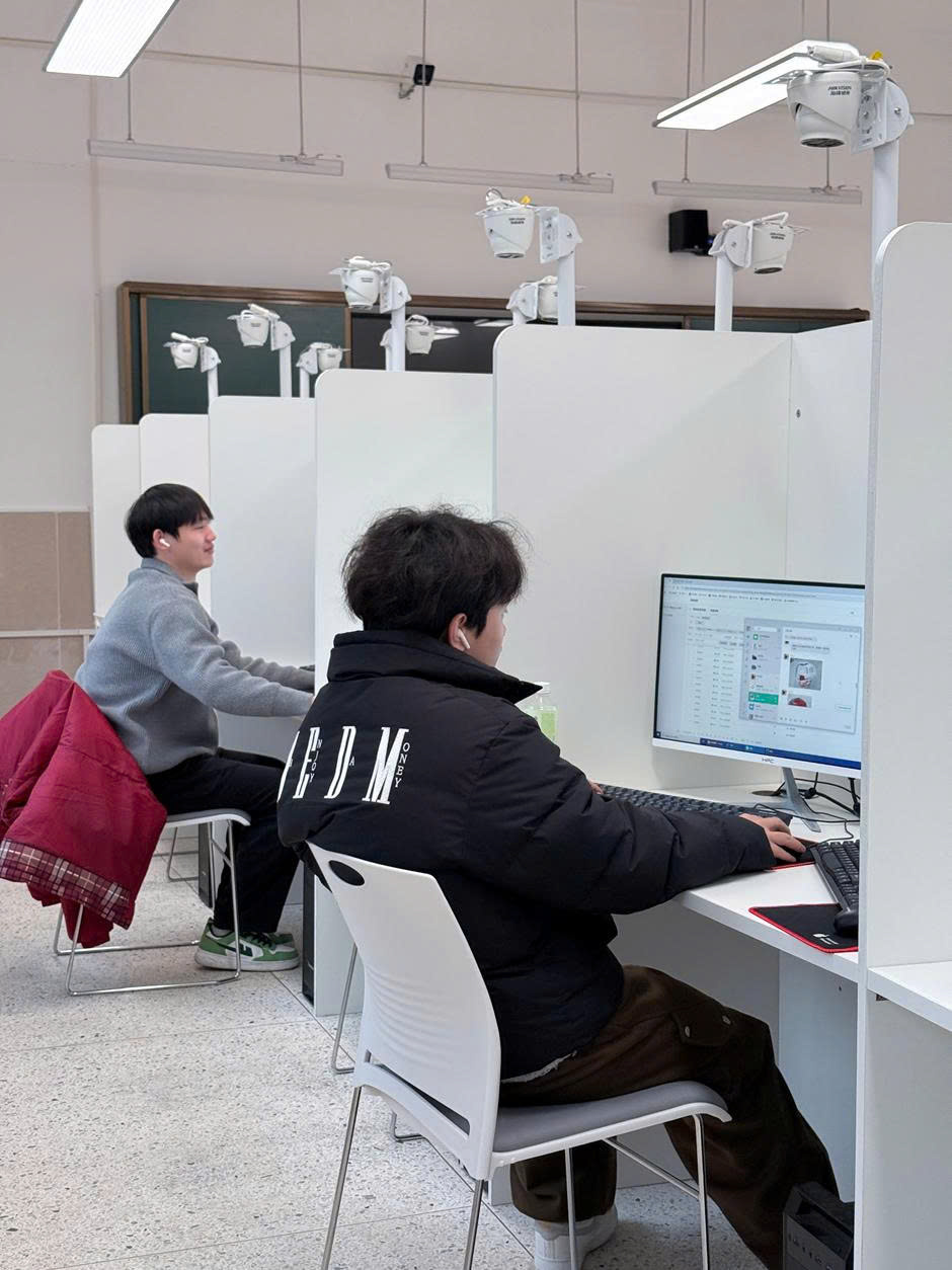 Students engaged in "hands-on" practice at individual workstations, focusing on digital content creation and management for monetization