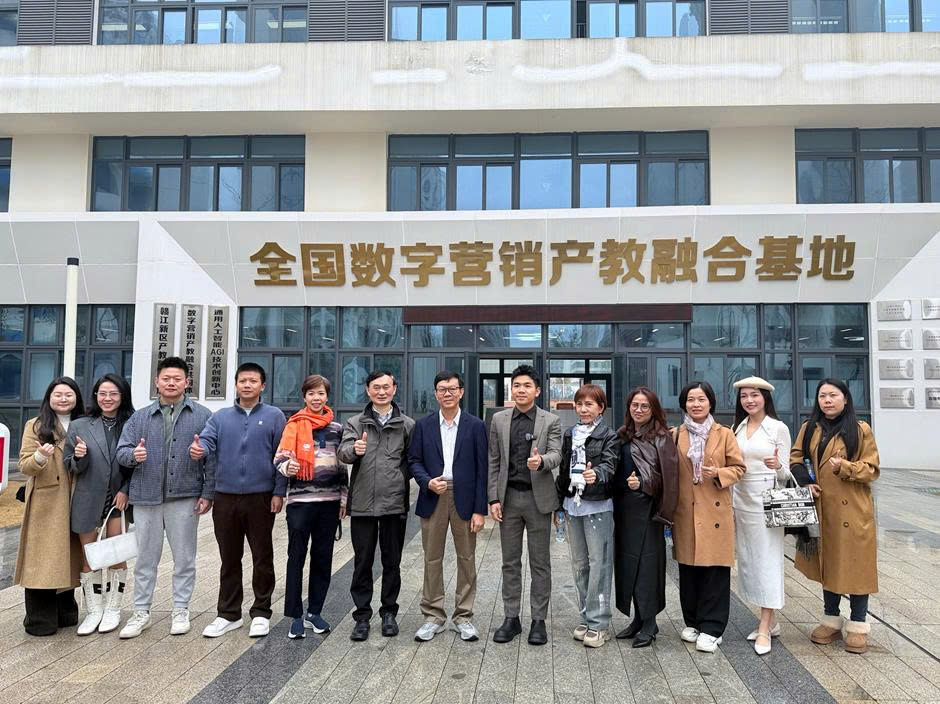 The LHU delegation poses for a group photo in front of the National Integrated Digital Marketing Production and Education Base in Jiangxi, China
