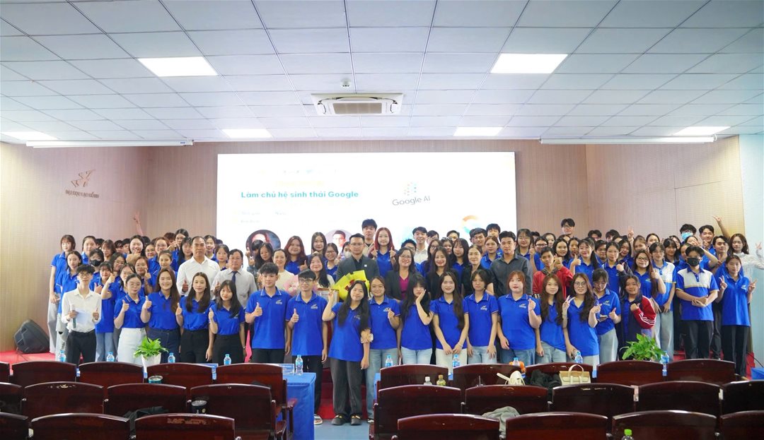 Notably, the program was honored to welcome two experienced speakers in the fields of training and technology: Mr. Nguyen Phuc Nhan – Google Certified Trainer and Ms. Nguyen Nhu Y – Trainer at Vietphat Group. With a practical, engaging, and up-to-date sharing style, the speakers provided students with valuable insights into the Google ecosystem, effective ways to apply digital tools in learning and work, as well as guidance on developing essential skills in the context of rapid digital transformation and the growing influence of artificial intelligence.